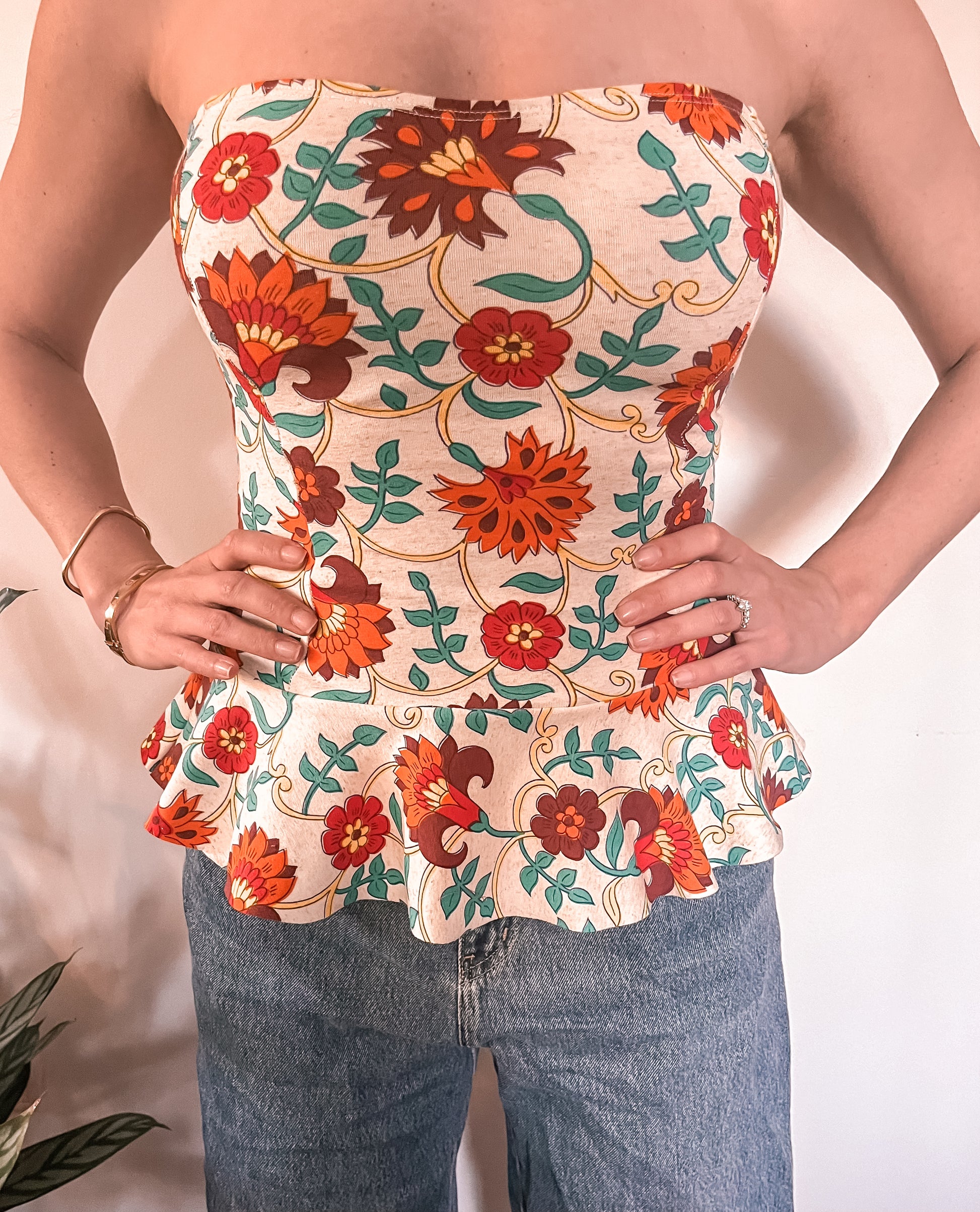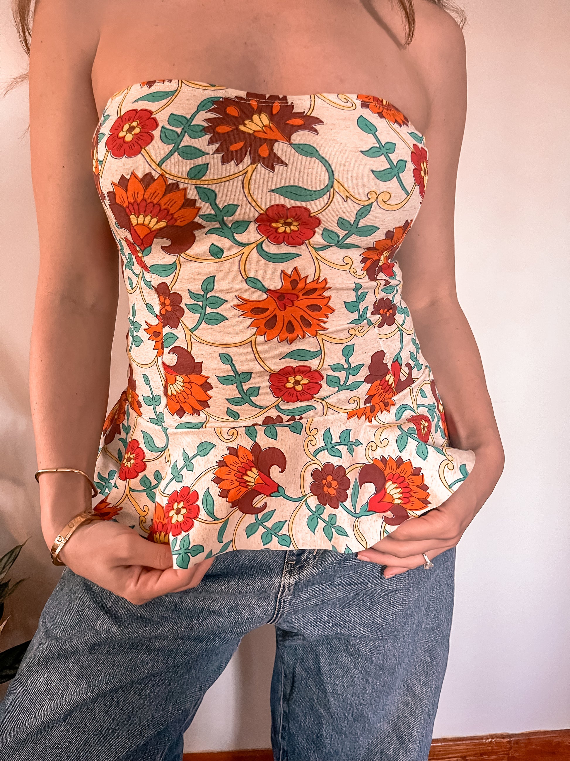 Φέρτε την αύρα του καλοκαιριού στη ντουλάπα σας με το Blooming Strapless Top! Αυτό το κομψό και φρέσκο τοπ σε μπεζ απόχρωση με λουλούδια σε τόνους κόκκινου και πορτοκαλί θα αναβαθμίσει άμεσα τα στυλ σας. Το ελαστικό ύφασμα και το σχήμα του καθιστά ιδανική επιλογή για κάθε περίσταση. Ανακαλύψτε την άνεση και το στυλ που σας ταιριάζει, ενώ απολαμβάνετε μια αέρινη αίσθηση στις καλοκαιρινές εμφανίσεις!