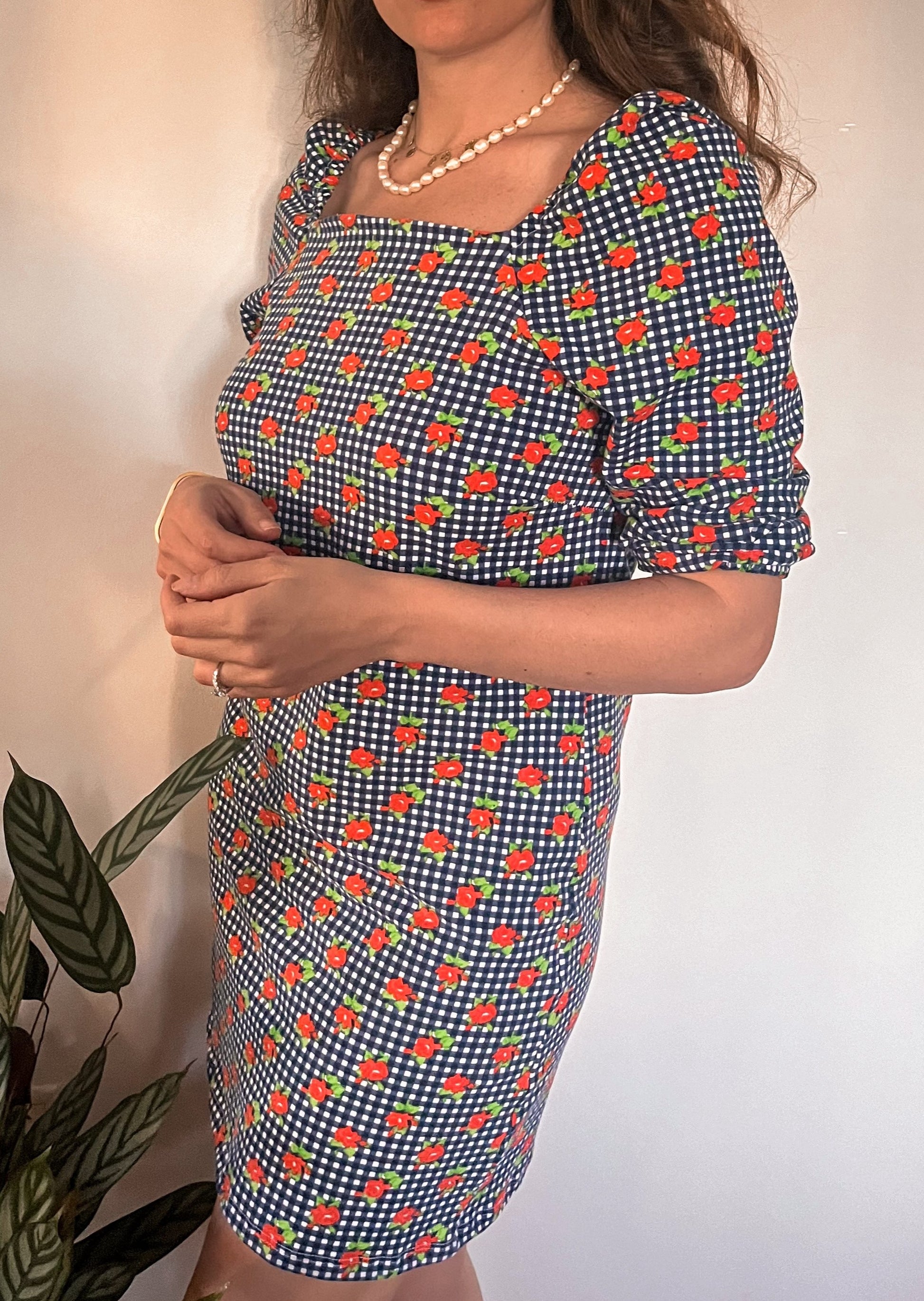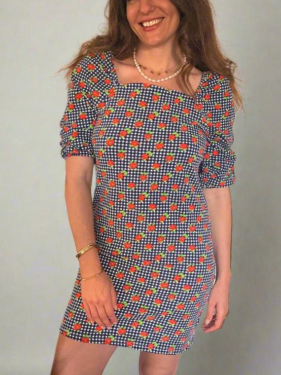 Μίνι Φόρεμα Daisy – Κομψό και αβίαστο. Διαθέτει φουσκωτούς ώμους, μεσαία μανίκια και μοναδικό μπλε/λευκό στάμπα τζίντζαμ με πορτοκαλί τριαντάφυλλα. Κατασκευασμένο στην Ελλάδα από απαλή βαμβακερή λύκρα για τέλεια εφαρμογή. Διατίθεται σε S/M και M/L.