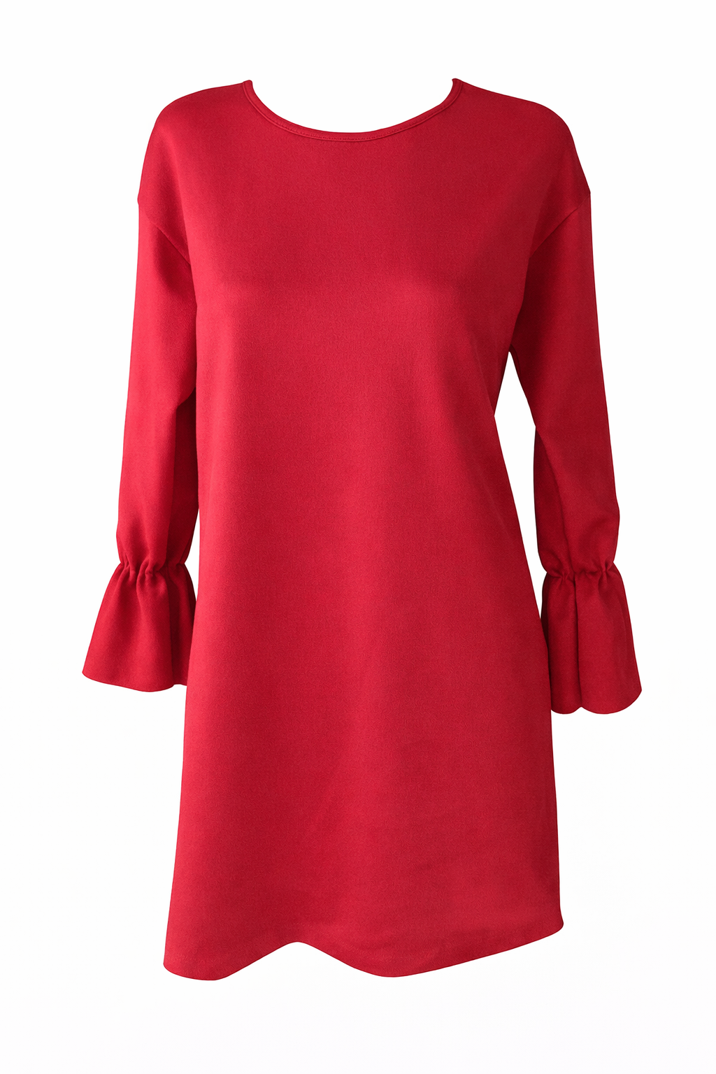 Strawberry Sweatdress – Ένα ζωηρό κόκκινο μίνι πουλόβερ/φόρεμα από απαλό ύφασμα φούτερ με μακριά ελαστικά μανίκια. Άνετη αλλά κομψή, ιδανική για casual chic εμφανίσεις. Κατασκευάζεται στην Ελλάδα.