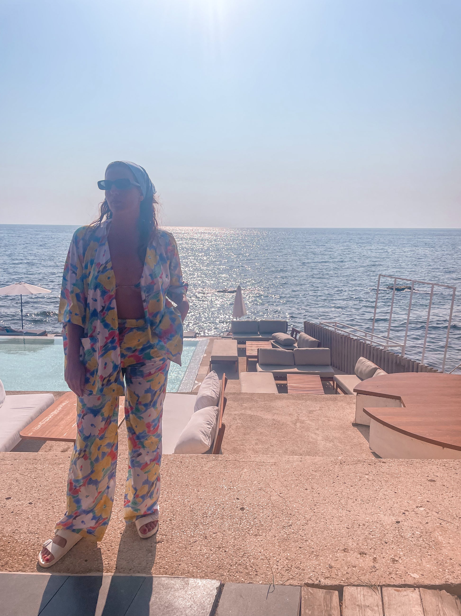Float through summer in these high-waisted printed lycra trousers. Designed for comfort and elegance, they feature a wide-leg silhouette and soft elastic waistband, perfectly complementing the matching kimono. Their vibrant hand-painted floral print adds personality to every step.