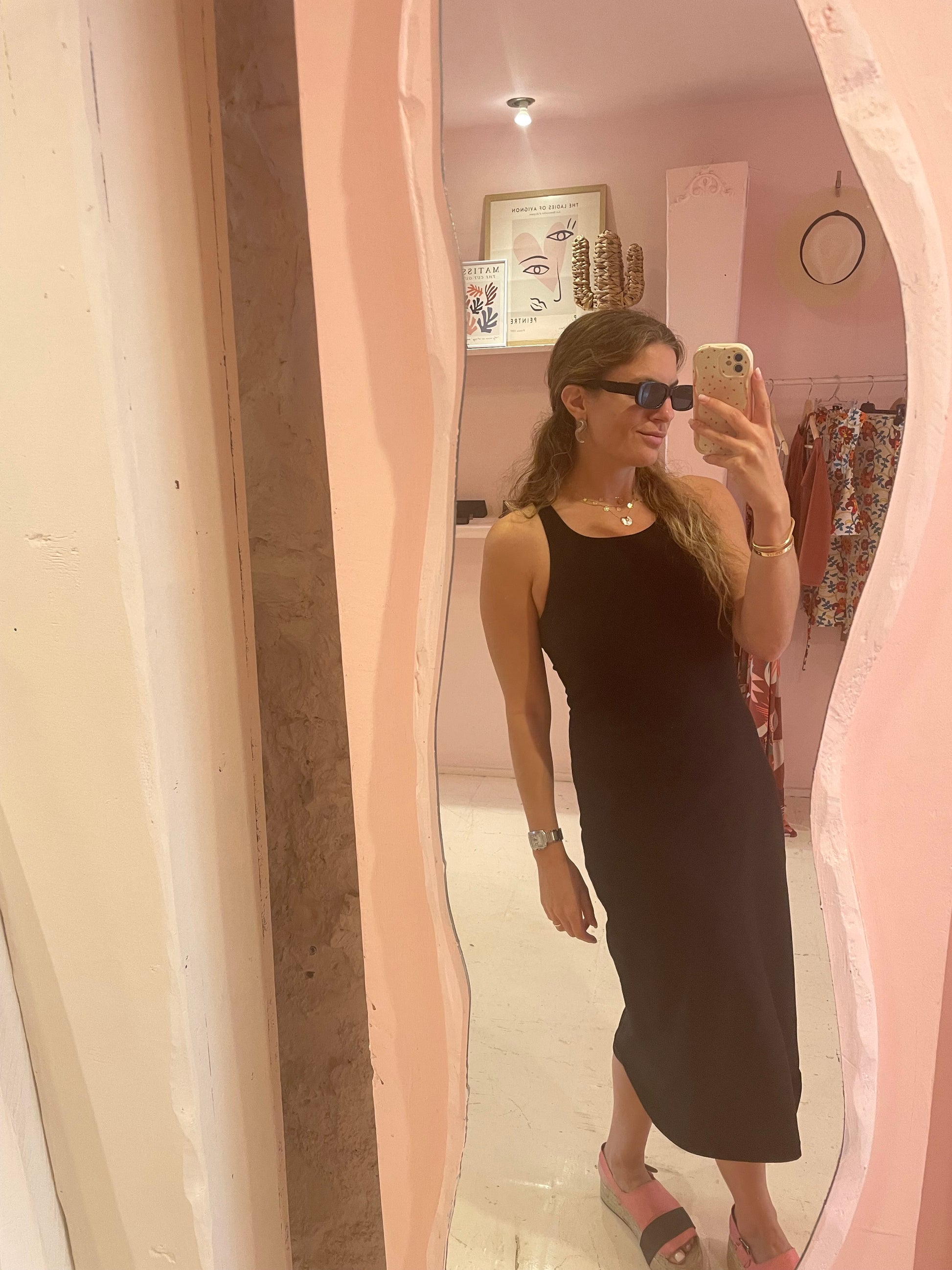 Midi Φόρεμα με Αθλητική Πλάτη σε μαύρο Χρώμα