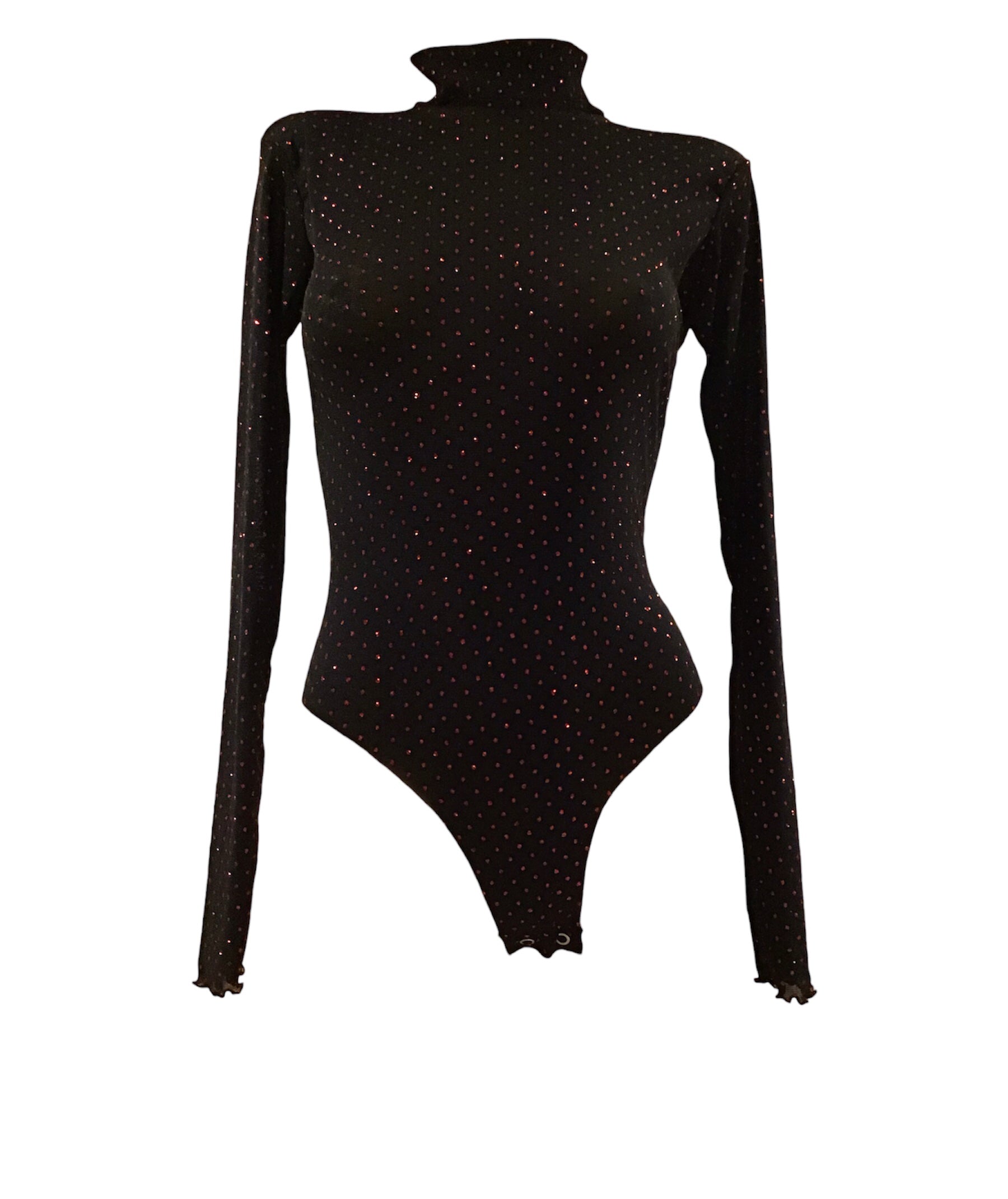 The Polka Cherry Bodysuit brings a fresh, playful twist to your wardrobe. This charming piece features a delightful polka dot pattern that adds personality and fun to any outfit while maintaining a sophisticated, wearable aesthetic.