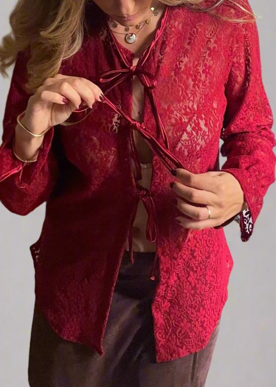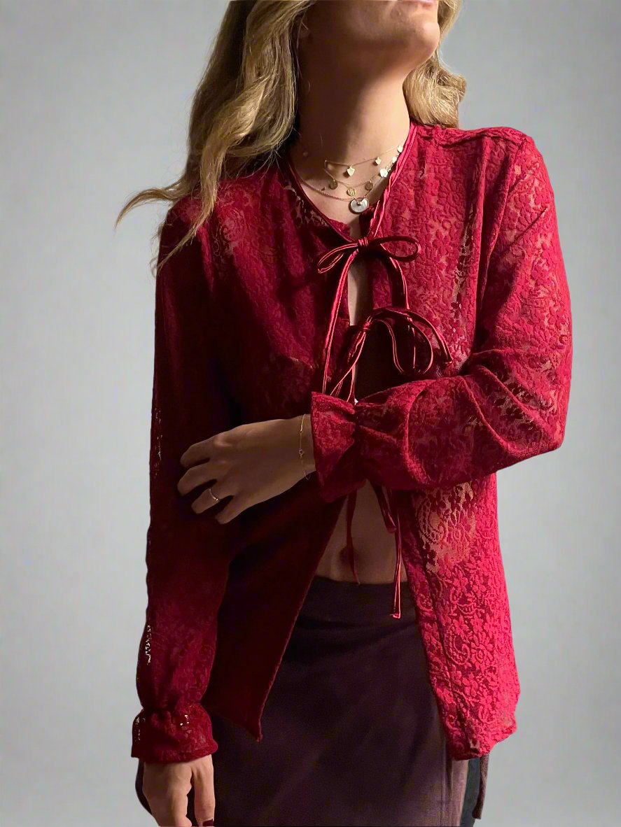 Προσθέστε μία ρομαντική πινελιά στην εμφάνισή σας με το Mandy Lace Shirt. Κατασκευασμένο από φίνα δαντέλα, αυτό το πουκάμισο προσφέρει εκλεπτυσμένο στυλ και αέρα κομψότητας. Αντί για κουμπιά, τα κορδελάκια στο μπροστινό μέρος προσθέτουν μία ιδιαίτερη λεπτομέρεια που τονίζει τη ρομαντική του αισθητική. Τα μανίκια διαθέτουν σούρα στο ύψος του καρπού, προσδίδοντας μία απαλή, φινιρισμένη εμφάνιση.