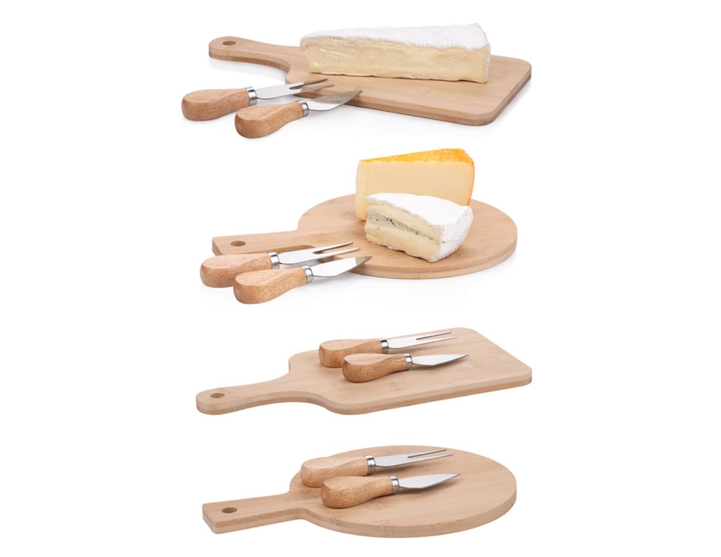 Ξύλινη Βάση Κοπής Τυριών με 2 Μαχαίρια