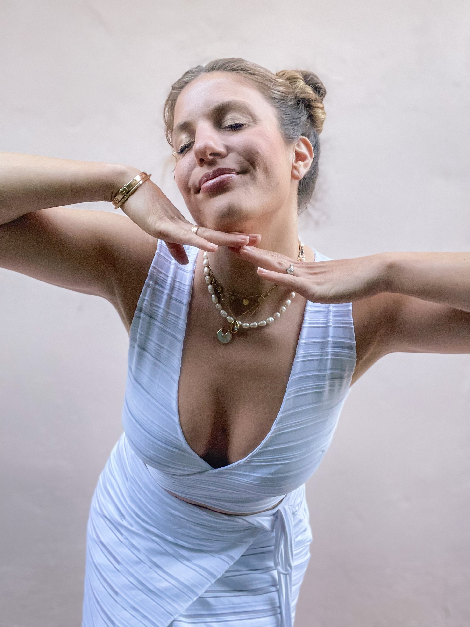 I know that is hard sometimes for us girls. And this is why I’m writing this to you. Even though I created this brand to be different from the industry standards I caught myself the other day thinking that I have to lose these extra 5kg I gained since the pandemic if I want to photoshoot these clothes myself so they can look better. I didn’t loose these kilos. Then I started thinking that perhaps I could airbrush my teeth cause they don’t look the whitest white they have looked as if a dress would look better if my teeth are white. Five minutes ago, right before I started writing this letter to you my girl I said a big “enough” to myself and here is why. It is so easy to fall back to the small checklist of how we are supposed to look like.
