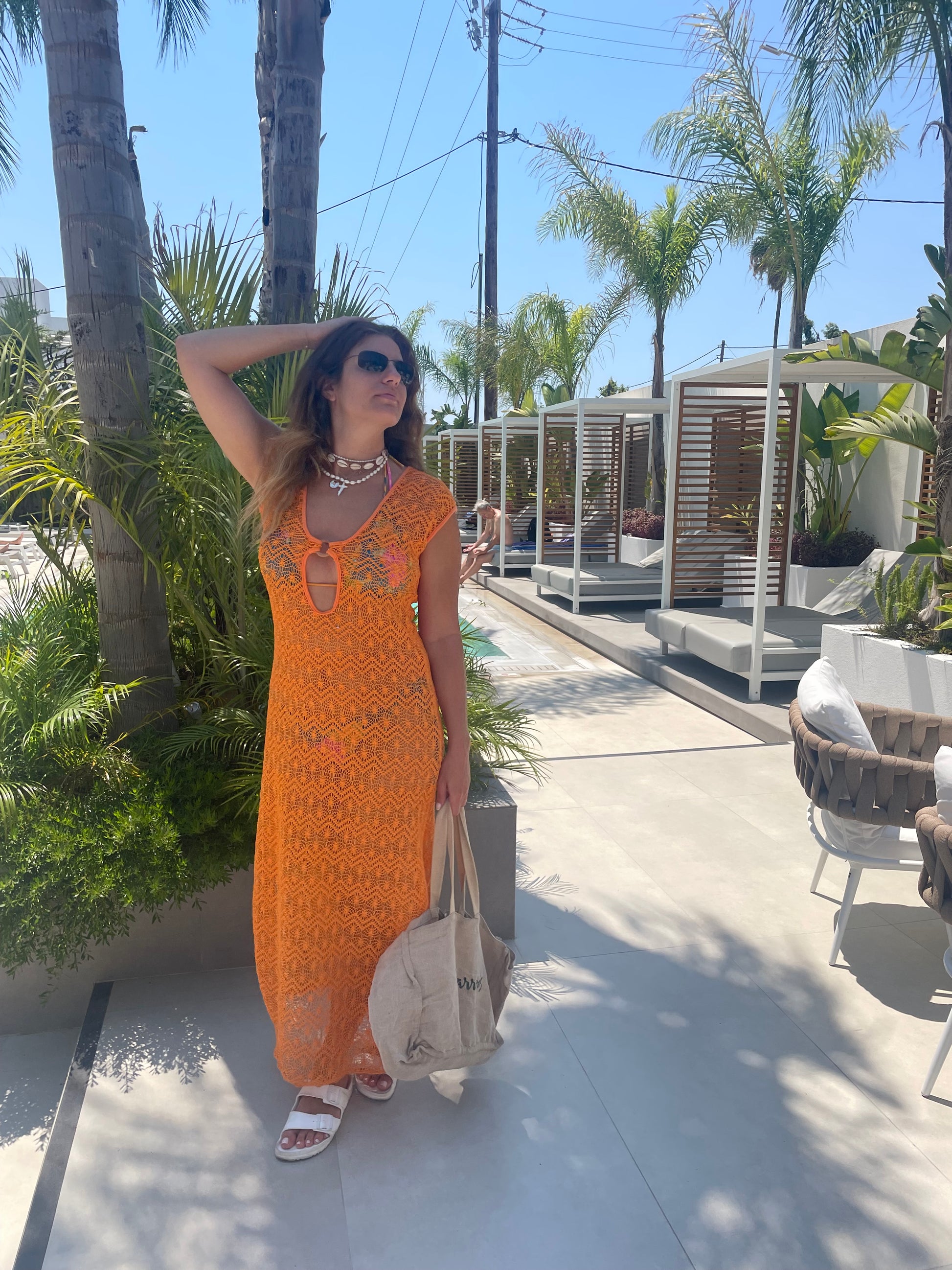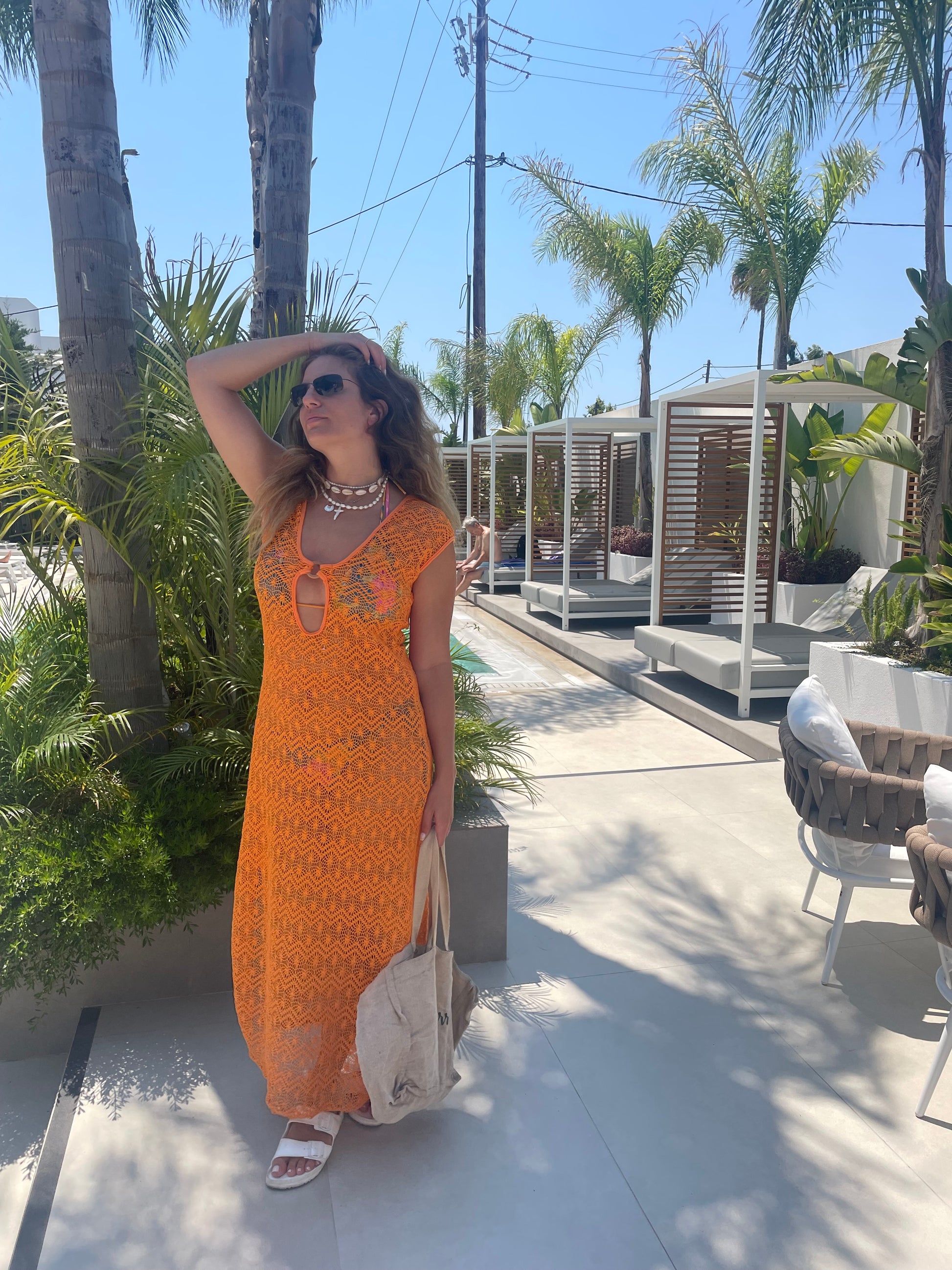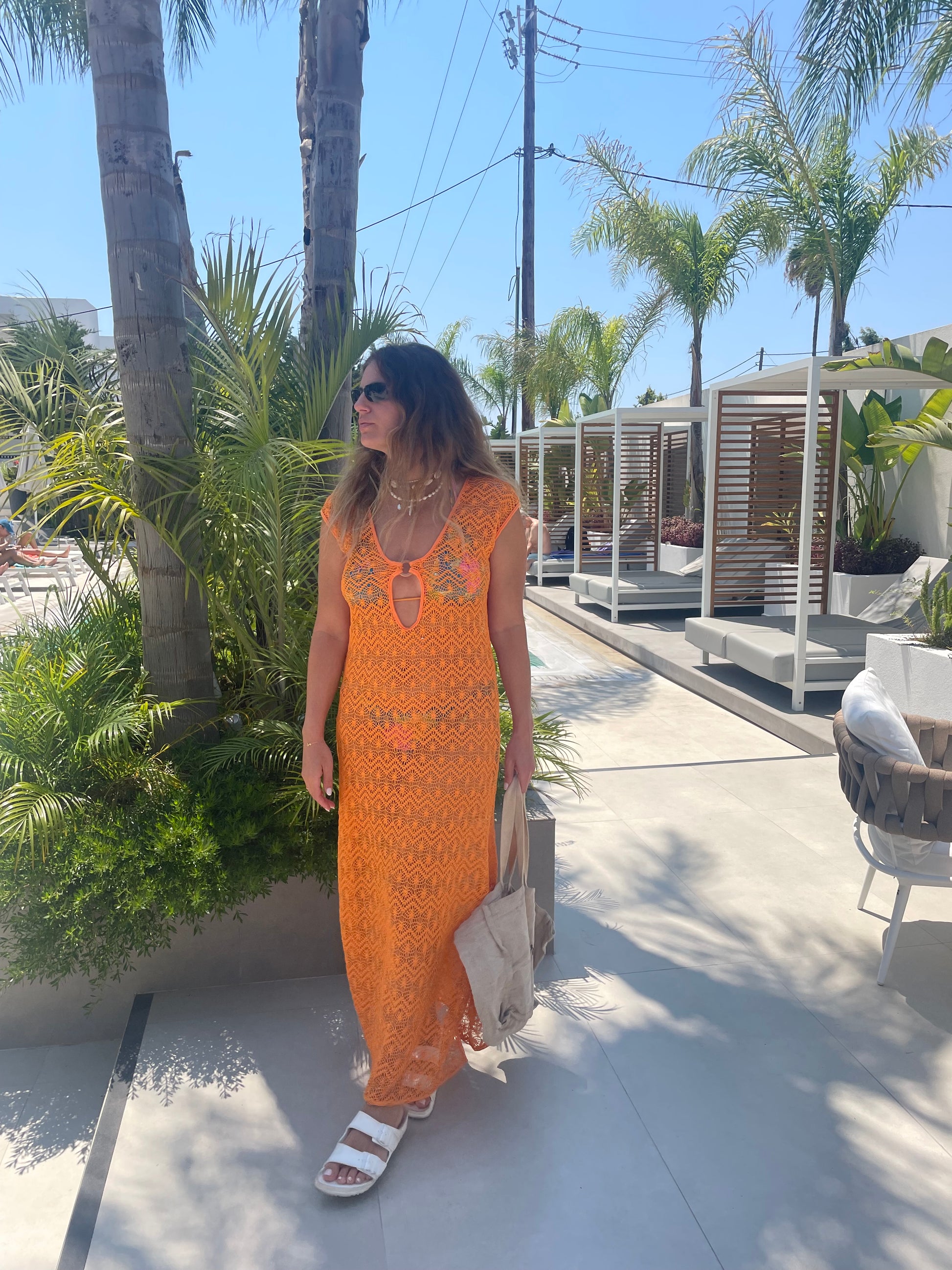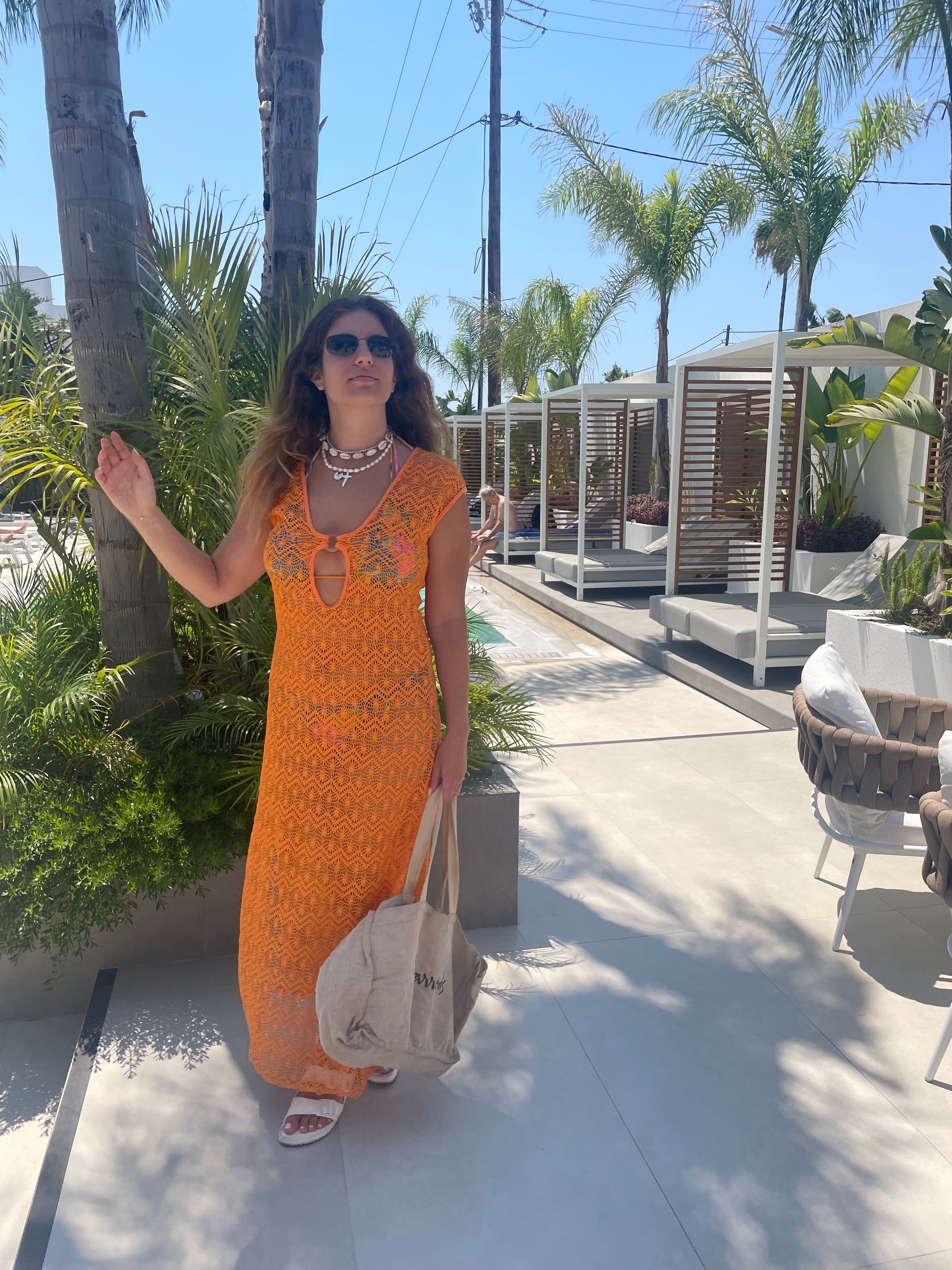 Sunset Crochet Cover-Up Dress – Orange Flame