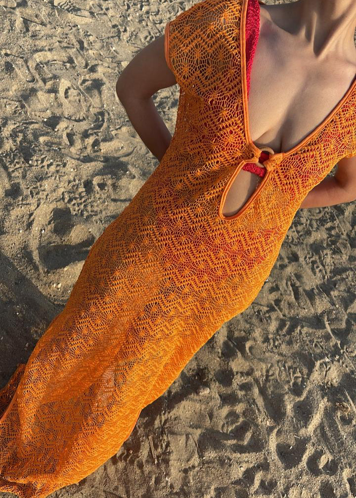 Make a statement on the sand in this bold, flame-orange crochet cover-up. Lightweight, airy, and irresistibly sexy.